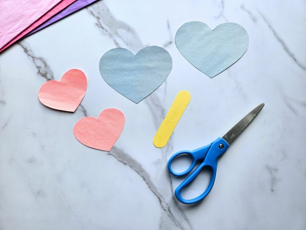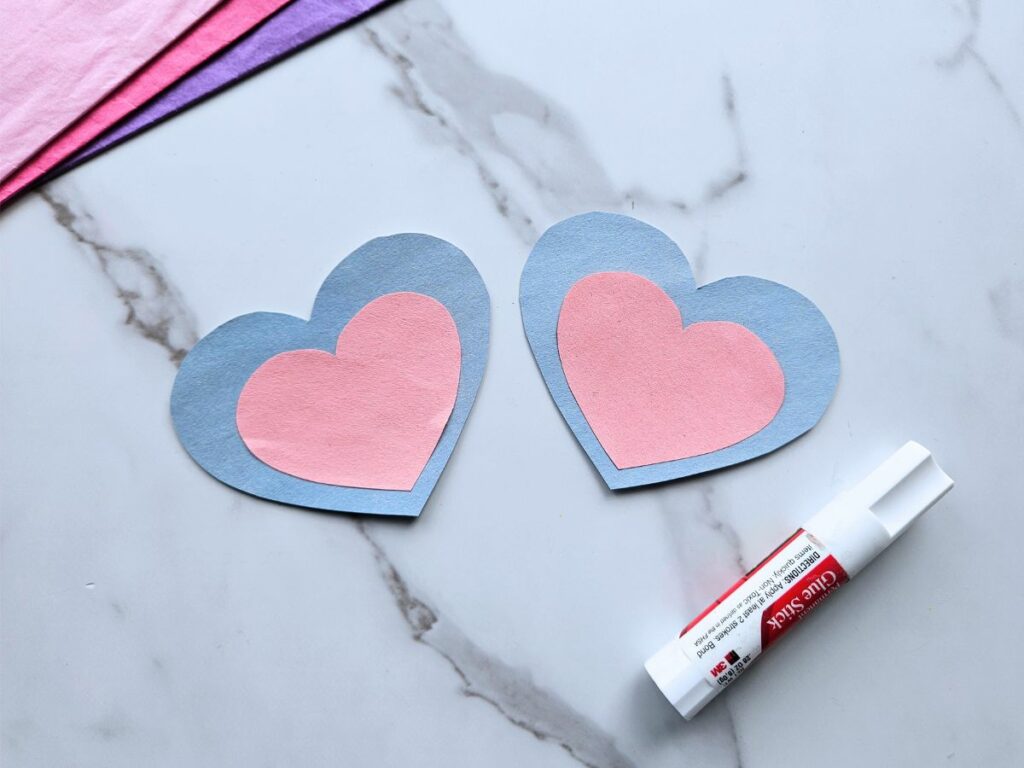 Now comes the assembly! Glue each of the smaller hearts to the center of one of the larger hearts.