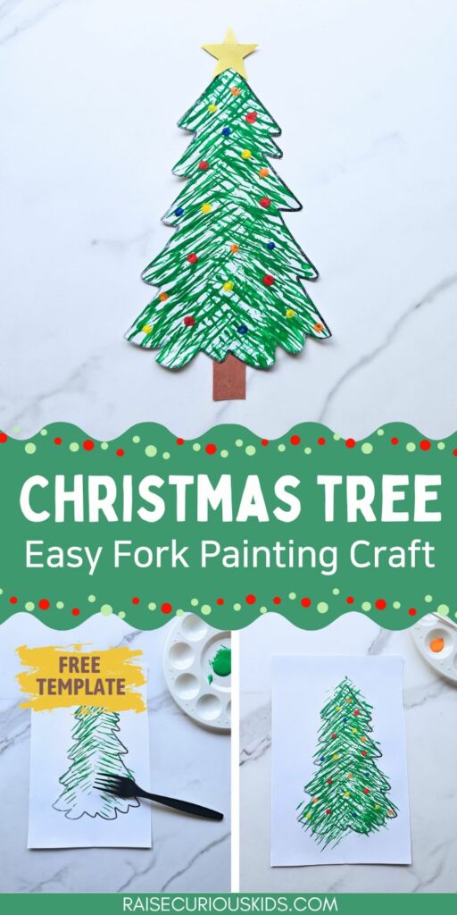 Kids will love this easy Christmas tree craft using fork and Q-tip painting!
