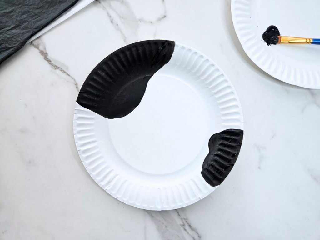 - Use black paint to paint a few spots on the paper plate.