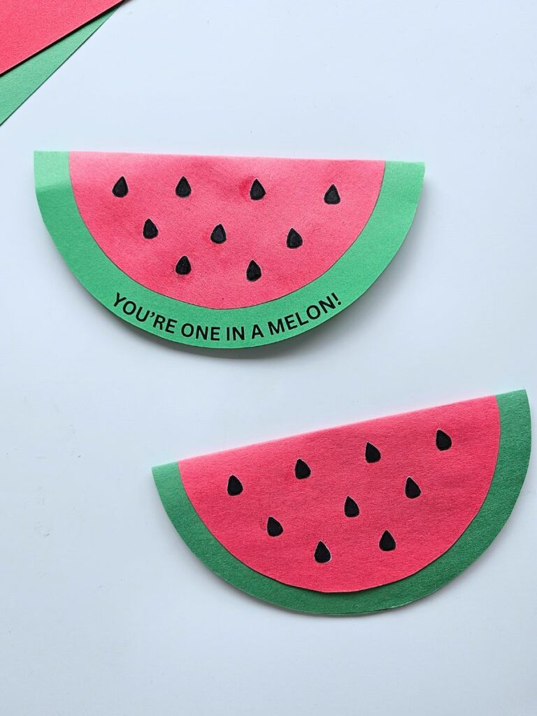 Featuring the cute pun “You’re one in a melon!”, it’s the perfect handmade valentine for friends who are truly special.