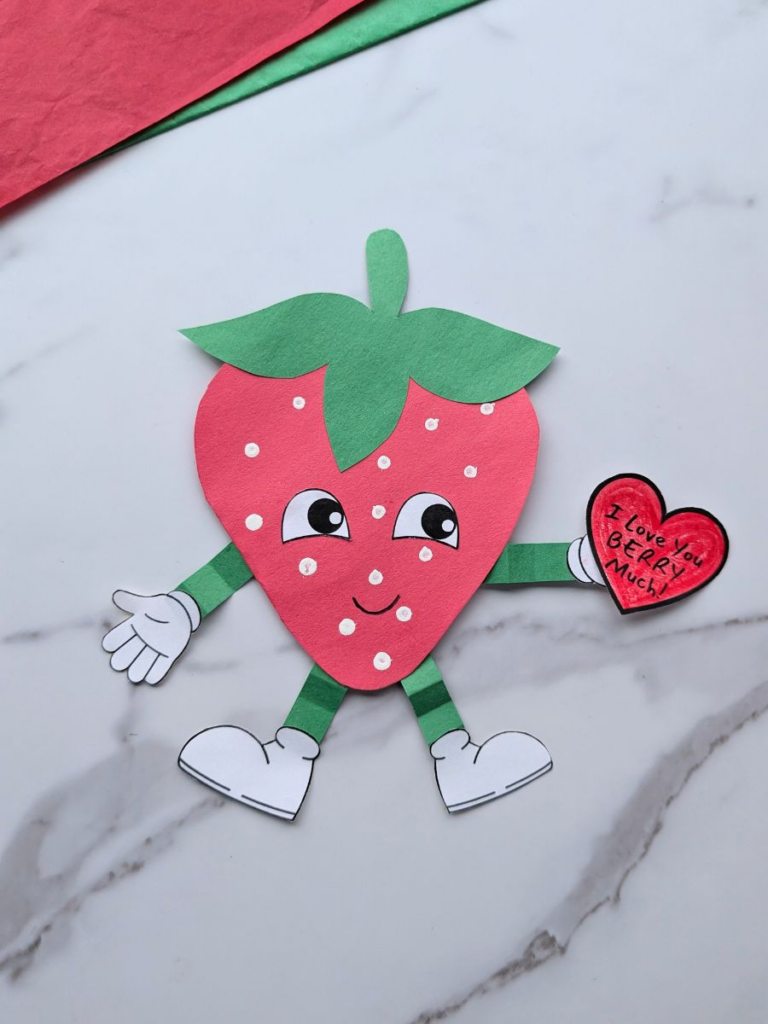 This strawberry paper craft is almost too cute for words, featuring a sweet personified strawberry holding a heart that says “I love you berry much!”