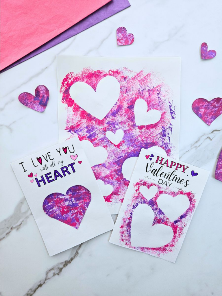 Plus, it comes with a free printable card template, making it easy for little ones to turn their masterpieces into sweet Valentine’s Day gifts!