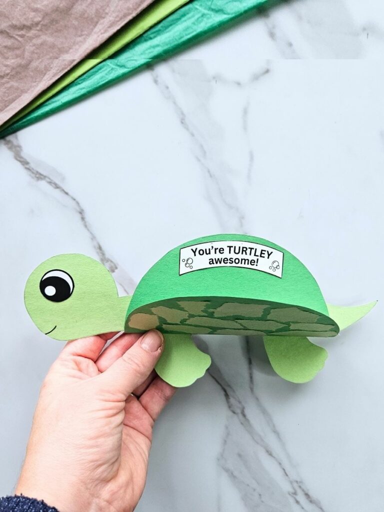 Slow down and get creative with this adorable turtle card craft, featuring a textured shell made from torn paper!