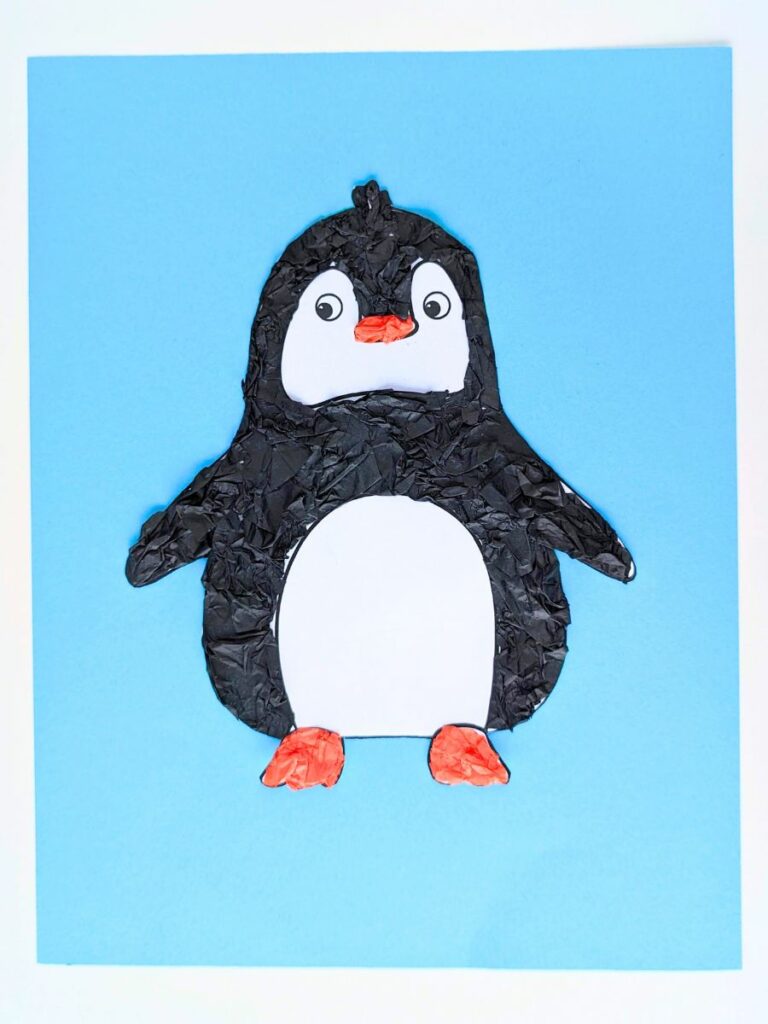 This super cute penguin is so simple to make- all you need is tissue paper and the free template!