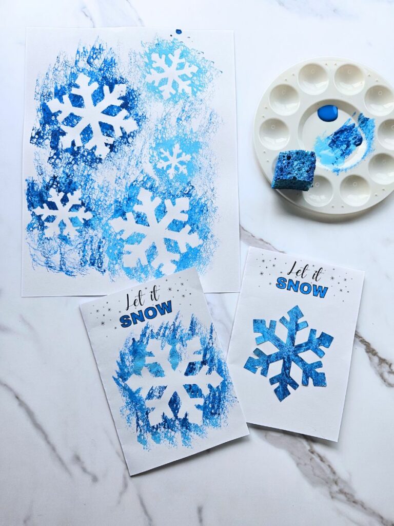 Get creative with this fun sponge-painting snowflake crafts for kids! This craft is easy enough for toddlers and preschoolers but is also lots of fun for older kids as well.