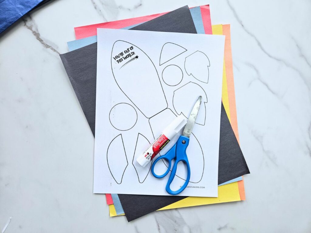 First, download and print out the rocket card craft template, which you can find at the bottom of this page.