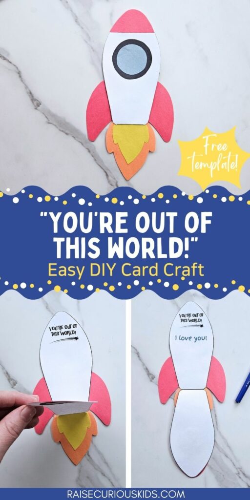 Looking for an adorable and personalized card perfect for gifting? Look no further than this adorable rocket card craft for kids, complete with “You’re out of this world!” message inside!