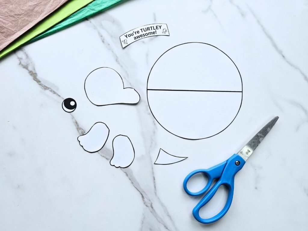 - Download and print out the turtle card craft template.