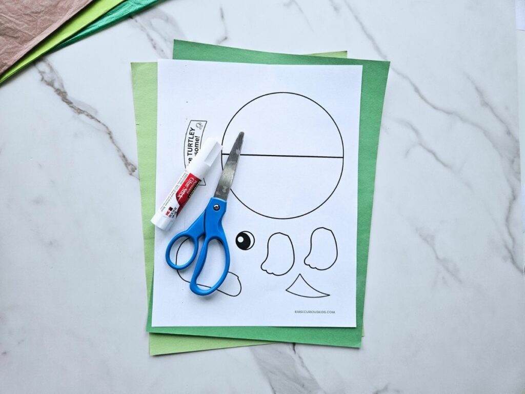 To start, download and print off the turtle card craft template, which you can find at the bottom of this page.