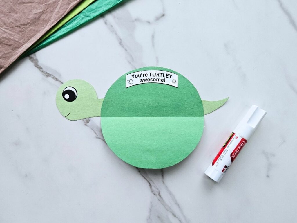 and glue the “You’re turtlely awesome!” saying to the inside of your card.